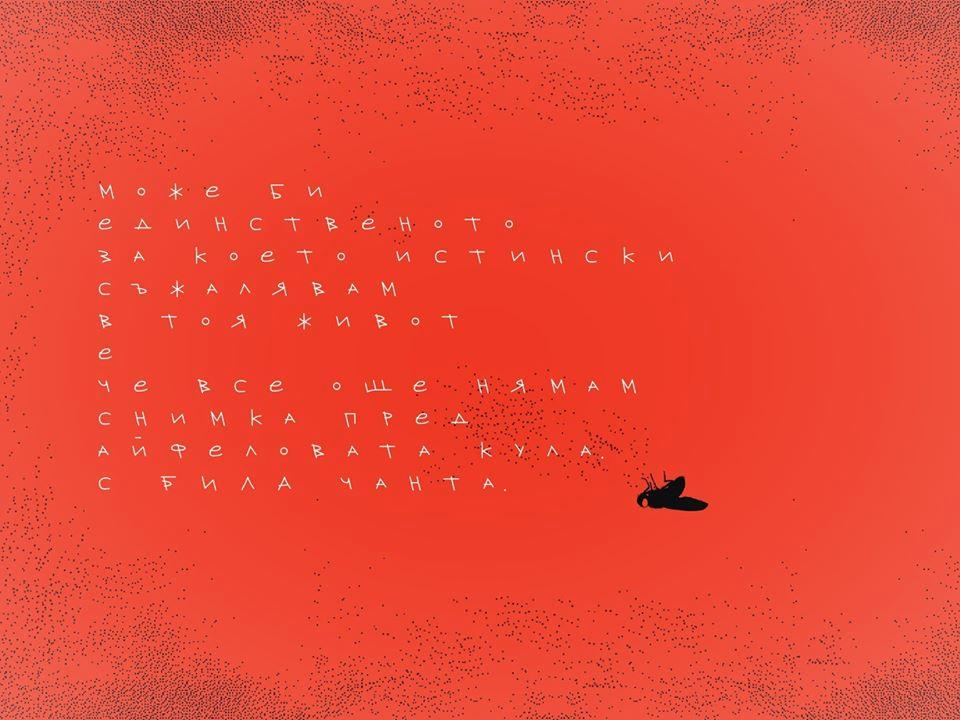 интересното в тази колаборативна връзка е, че в плътността на думите се съдържа внимателното вглеждане на случайно уловеното в потока на речта и общуването като обмен.