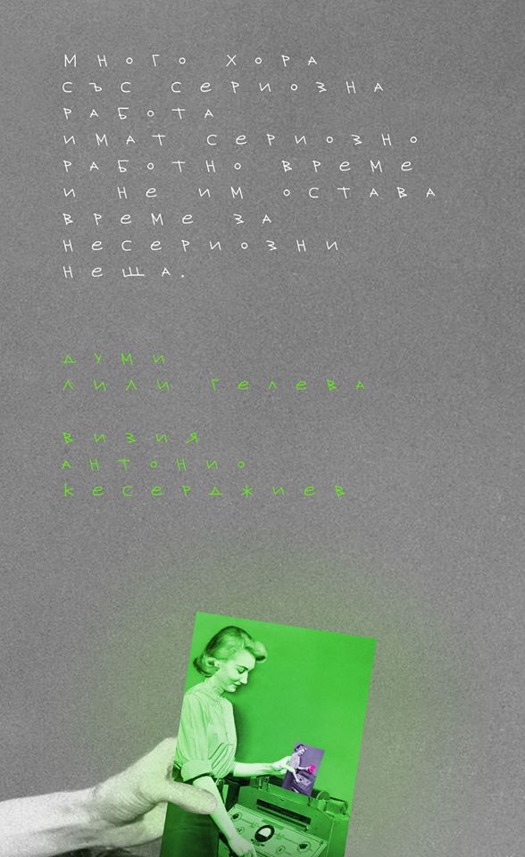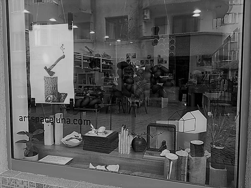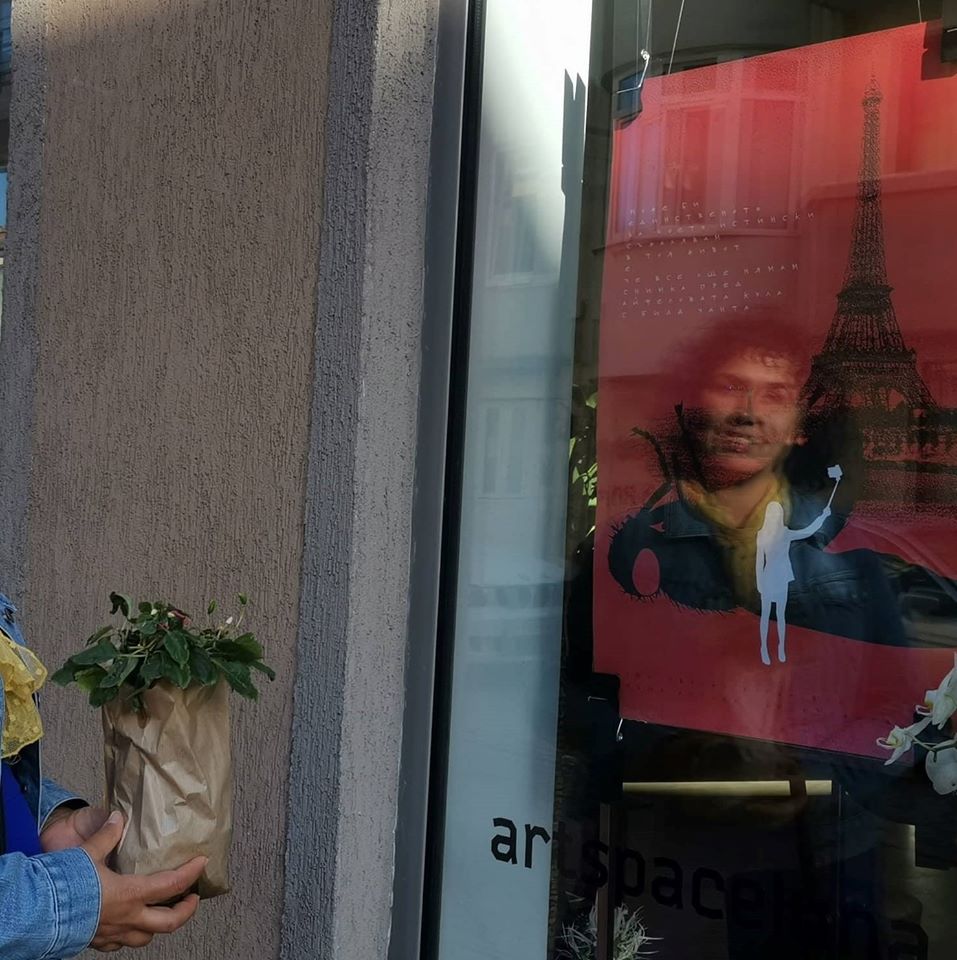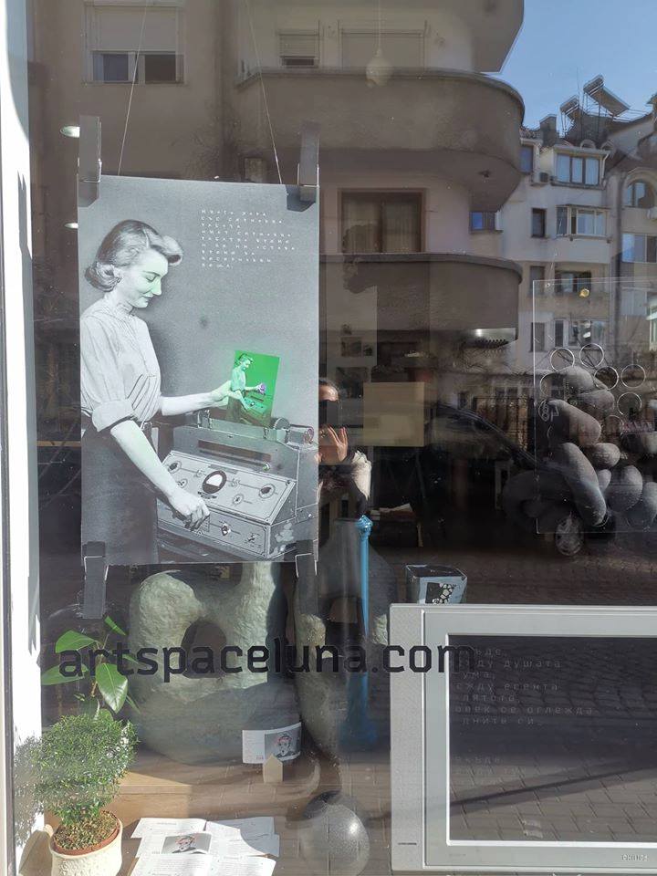 негов материален израз е серията плакати, създадени от Антонио Кесерджиев, експонирани на витрината на Artspace Luna [ дом за съвременно изкуство Луна ]