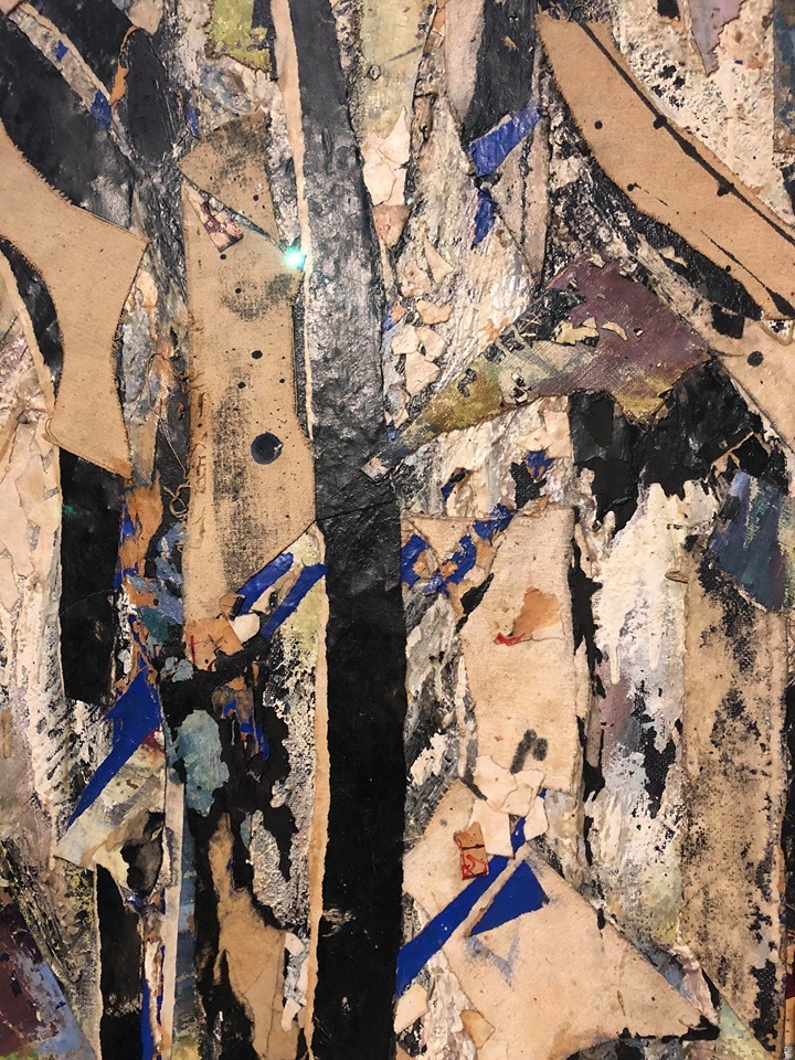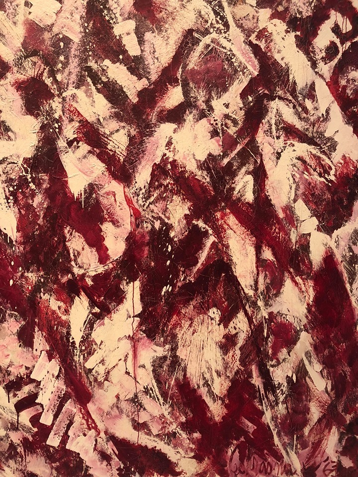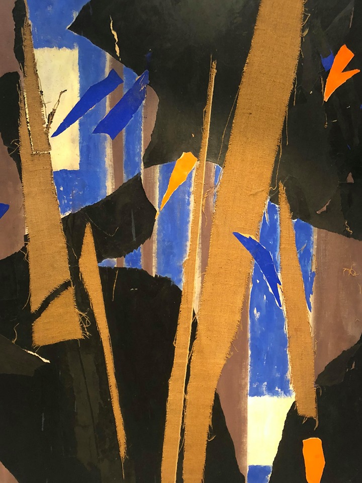 създава колажи чрез парчетата – от изрязани свои творби / създава със замах, а волността й добива добива характер на обновяваща се любов или онази, която скритостта й отнема.