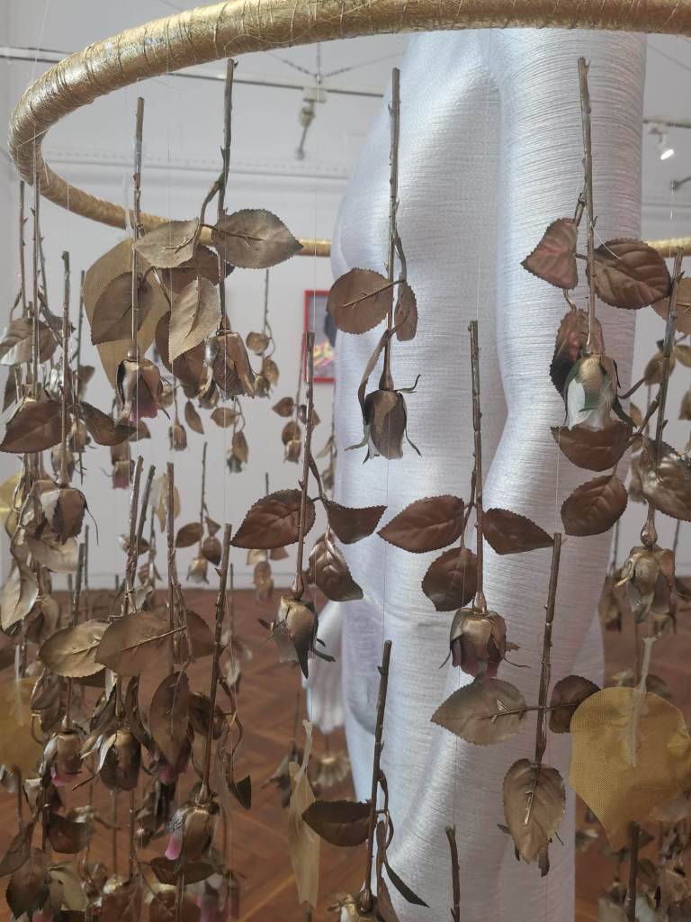 потапя в асамблаж, инсталация от визуални и пластични обекти, които внушават колебанието между искреността, приближаването и отчуждаването.