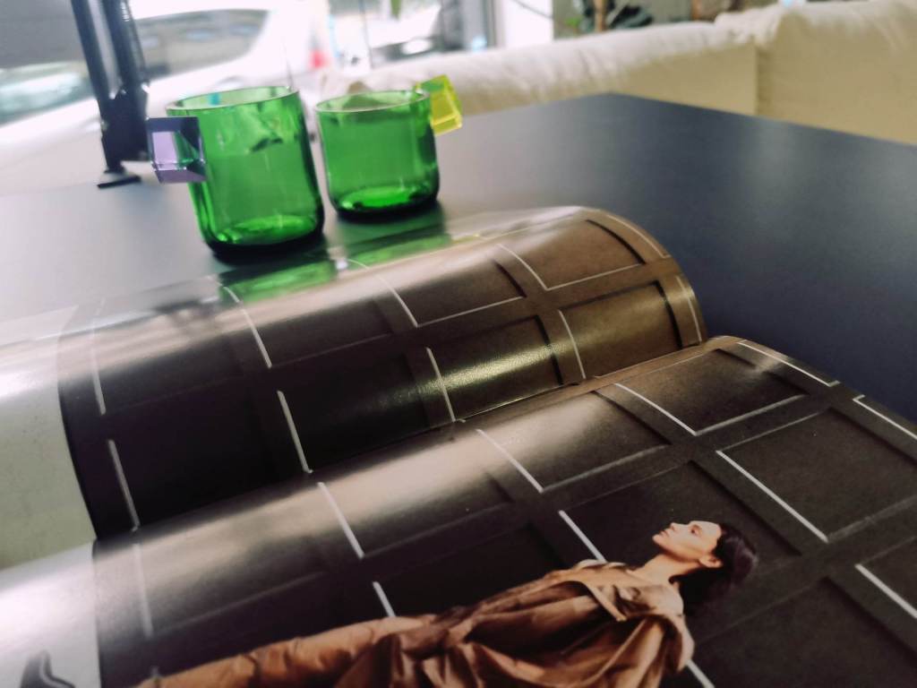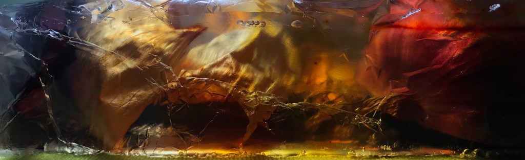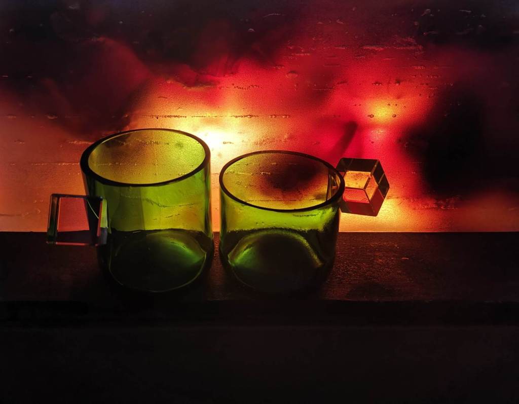 открих онази особена живост в близостта на авторските идеи, която въпреки дистанцията им и тяхната непознатост, заявява ясна връзка_ [ докато мисълта за бреговите ивици_щедро покрити с белези на употреба_пластмасови чаши, опаковки, кутии, найлони, въжета_изоставени и захвърлени битови отпадъци, свързващи човешката консумация и нехайство в гордиев възел / то стъклените чаши на Елизар носят чувство за спасителна кауза_рециклиране и начини на живот ]