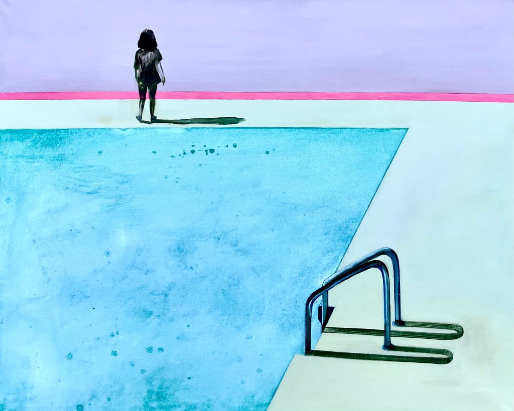 _Магията на водата е хипнотизираща, а когато тя е затворена в неестествено за нея пространство се получава интересено напрежение. Пряко вдъхновение съм получила от басейните на Дейвид Хокни. Интересна ми е тази ‘’игра’’ на нещо привидно статично, но пълно със свои вътрешни турболенции. Смятам, че с тези серии картини, успявам да предизвикам публиката към един особен вид медитация.