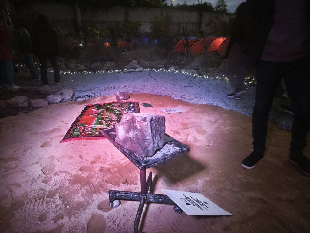 като засадени лукувици на млади въпроси върху пясъчник за експериментална игра, двете експлицитни трактовки_ ‘всички изложби в една ‘ и ‘всички въпроси в един ‘ сякаш са опори на легенда, разказваща за космически човек, който на изкачване трансформира камъка в пястък.