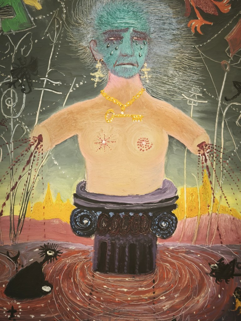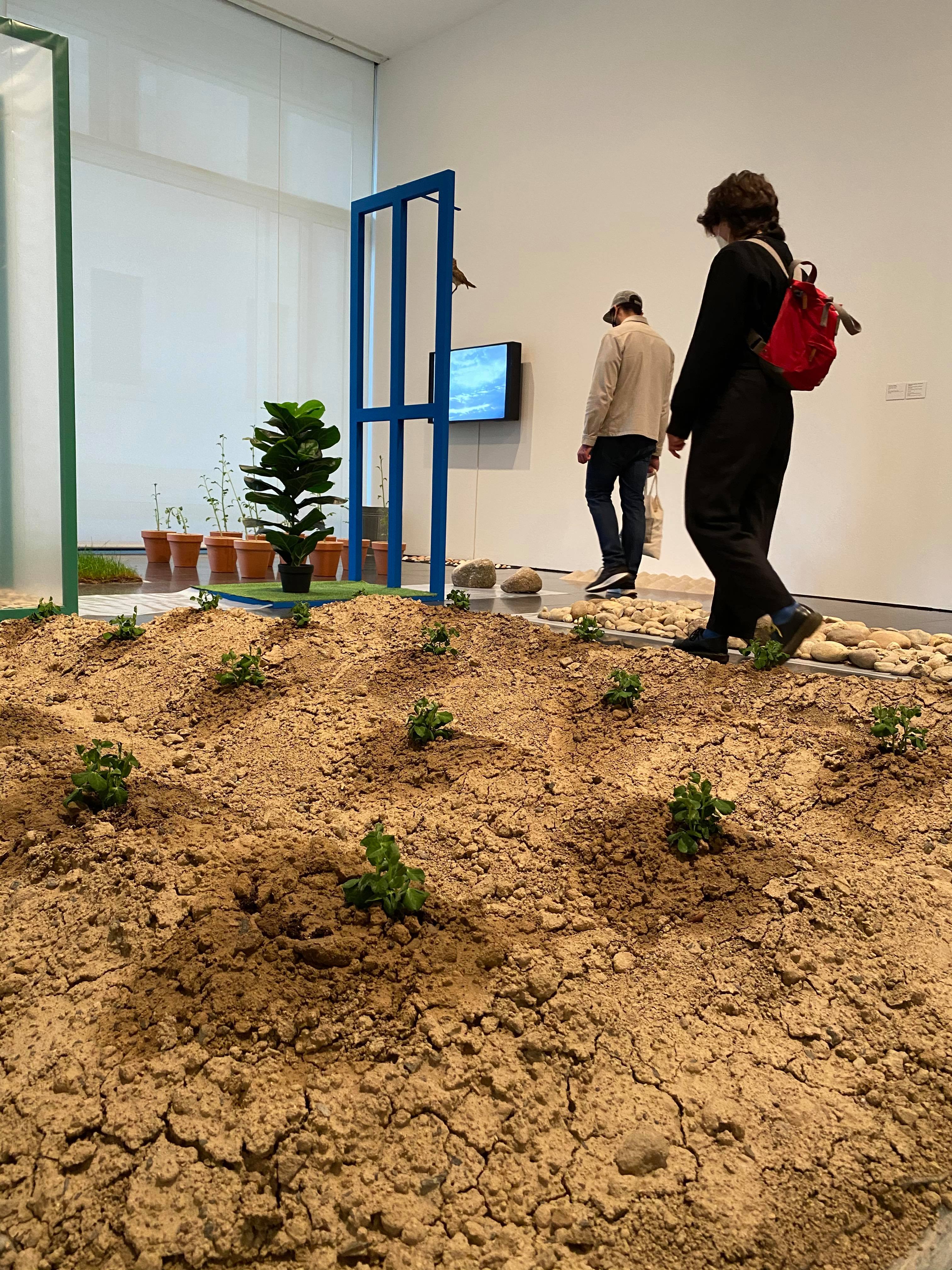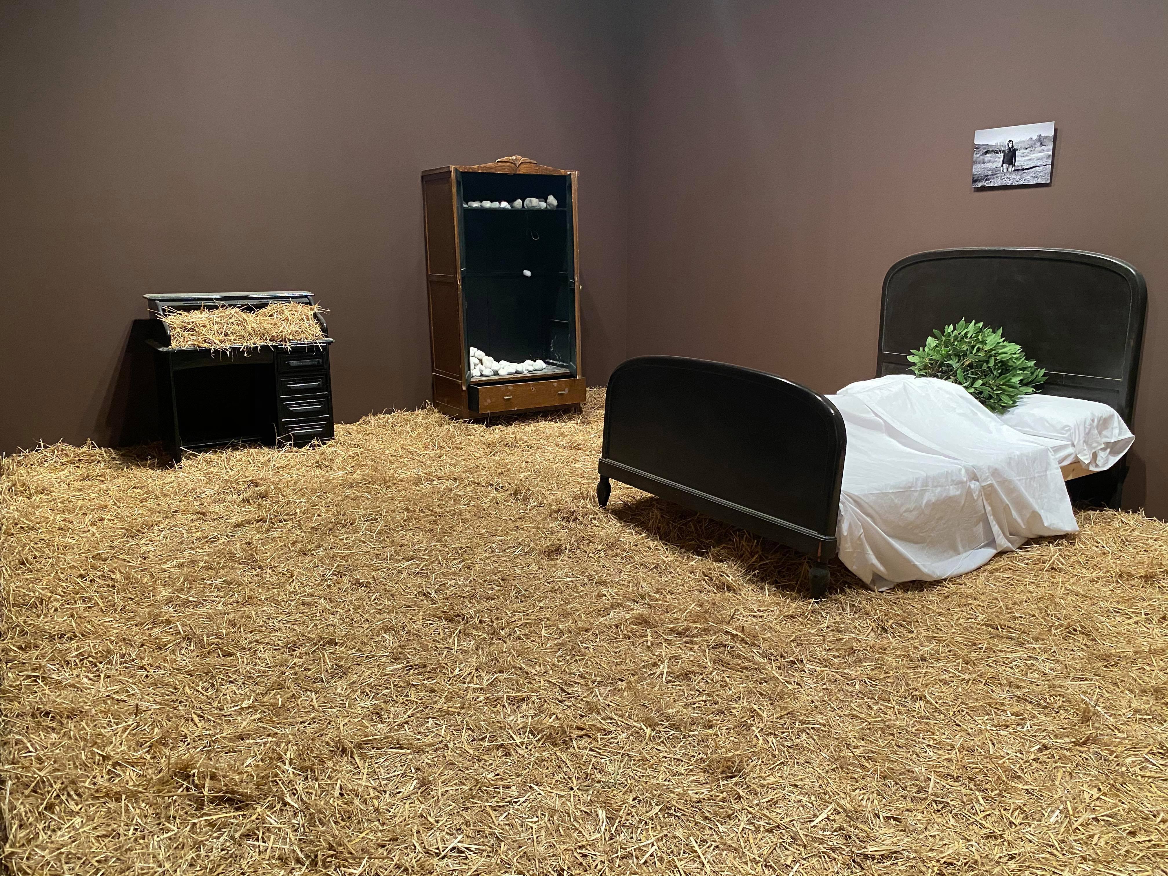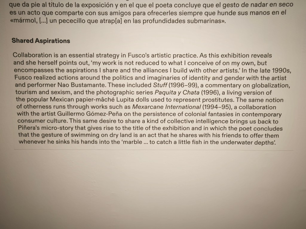 самото представяне на творбите, включени в изложабата й в MACBA, Барселона от 23 май 2025 до 11януари 2026 с надслов: ‘ Научих се да плувам на сушата ‘, прилича на една широко разтворена книга на живота в различни глави, откроени чрез езика на многообразни медии и спрямо това – съответно в различни формати и обеми на самото галерийно помещение.