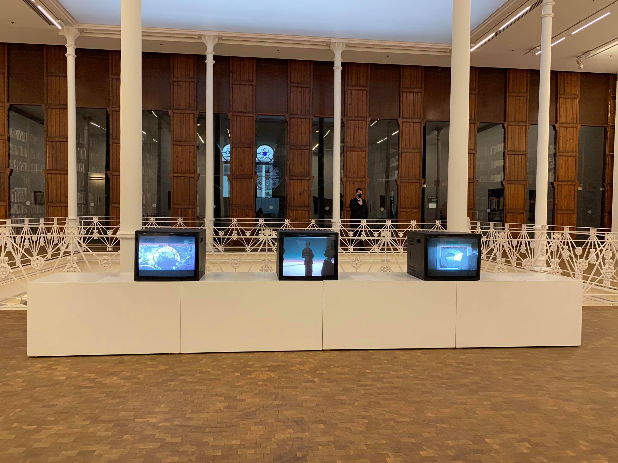 експозиционната постановка в огромната галерийна площ е решена така, че въздейства като въпрос_дали чрез светлинни позиции или поради смяна на погледа от видео стени към пластики и картини по стените продължават динамиката на мисленето на артиста – красноречиво и плавно.