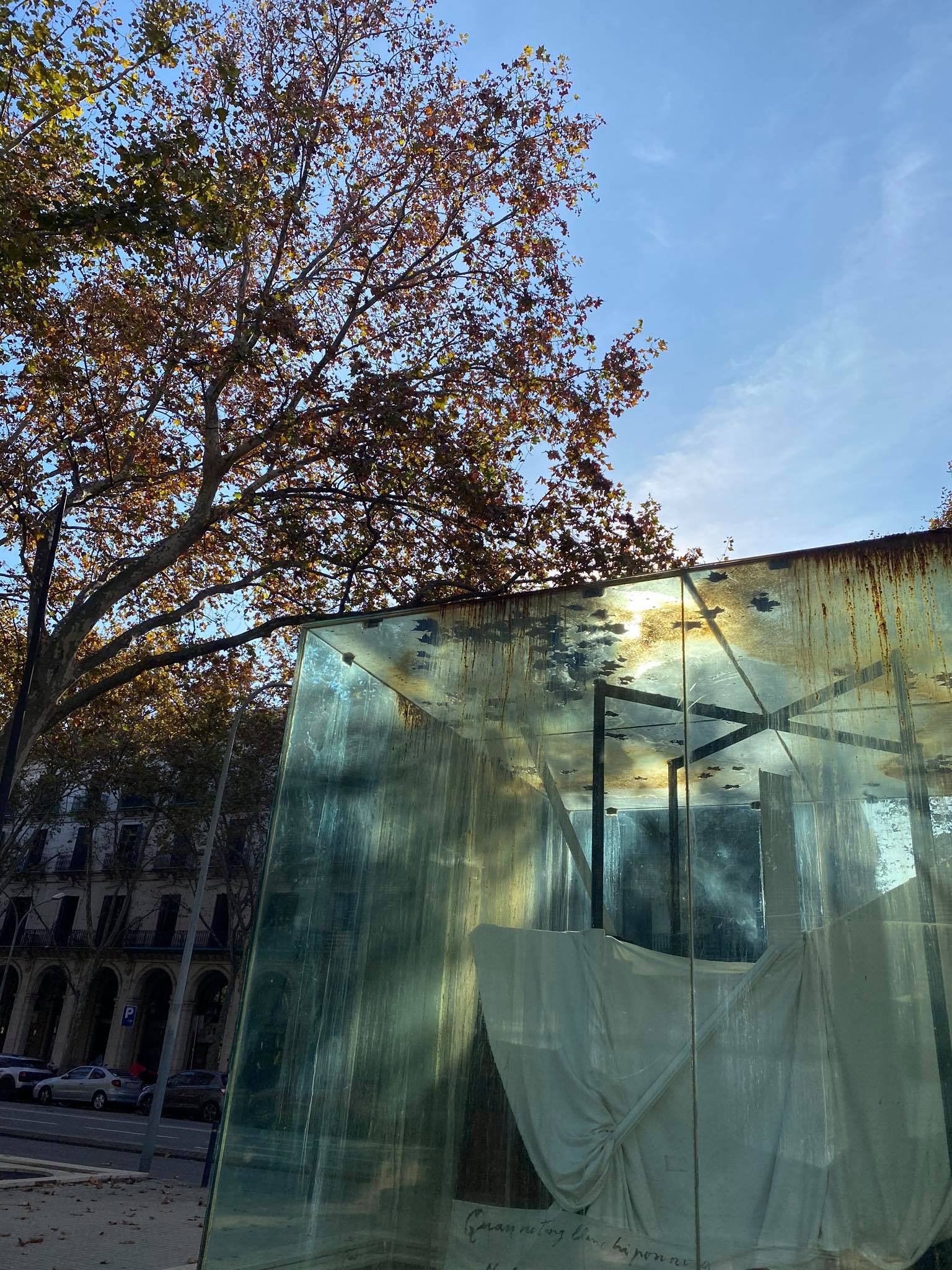 улиците на Барселона обръщат погледа ни и към различната 2020 година, когато пандемичния период създаде друг ритъм в дните ни_гранично време, което ни срещна с друг тип тревожност, а пространствата се посещаваха при строг режим и с предпазни маски.