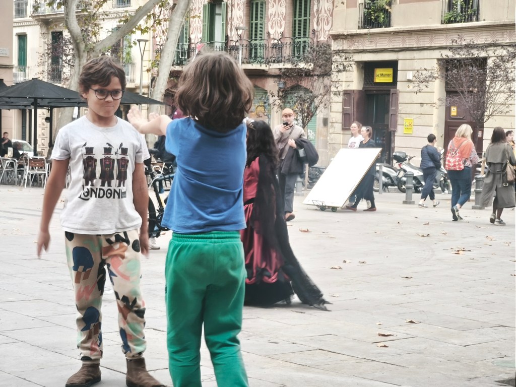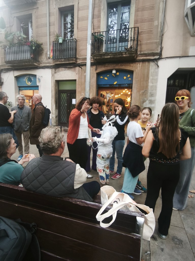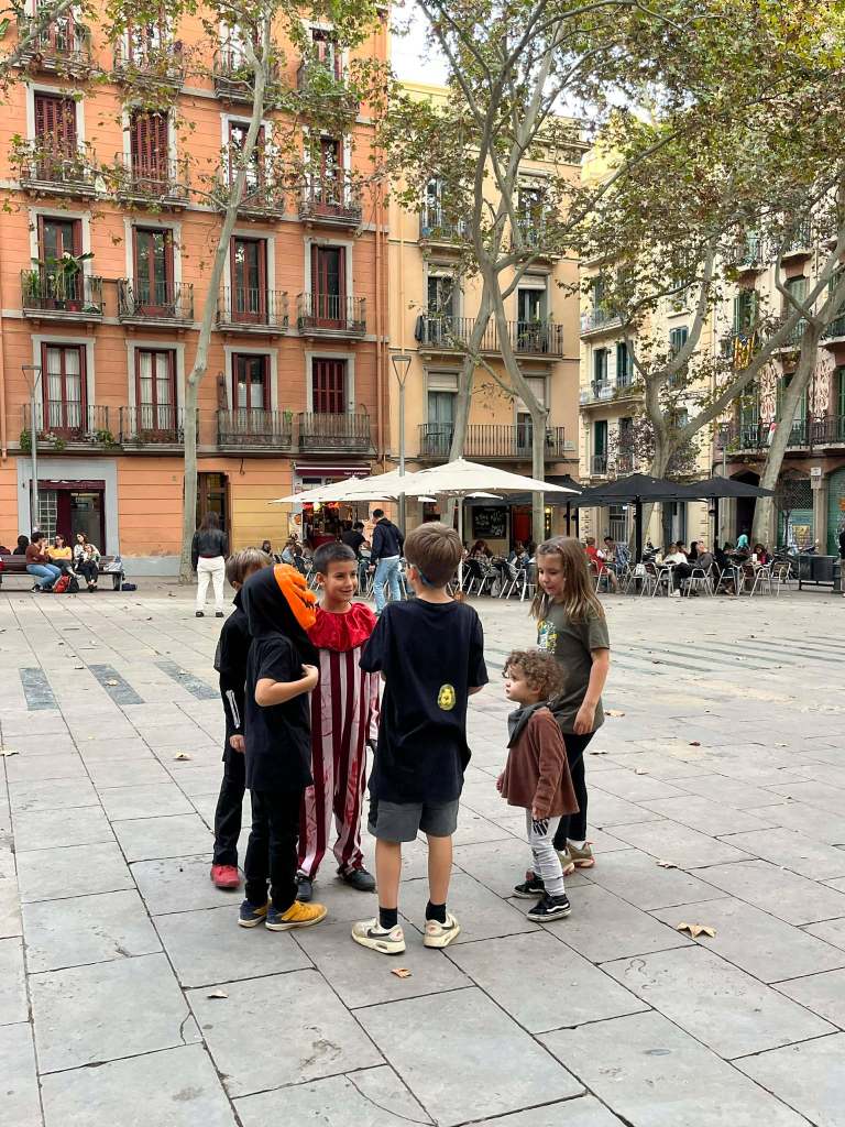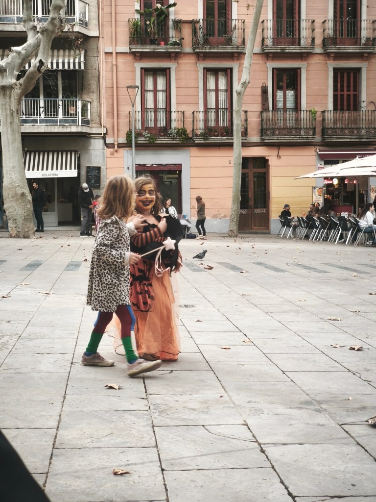 непринудеността като начало на моето испанско наблюдение_малък градски площад, пейки, кафетерии с пресен сладолед, малки книжарници, интересни галерии, хора, дошли на среща с други хора. имах чувството, че Хелоуин е герой на забравата или поне чрез забрава на делника, празникът живее в умовете на хората, които черпят по улиците, подават ми цвете, децата играят с плашила и кукли вещици пред стълбите на църквата в квартала