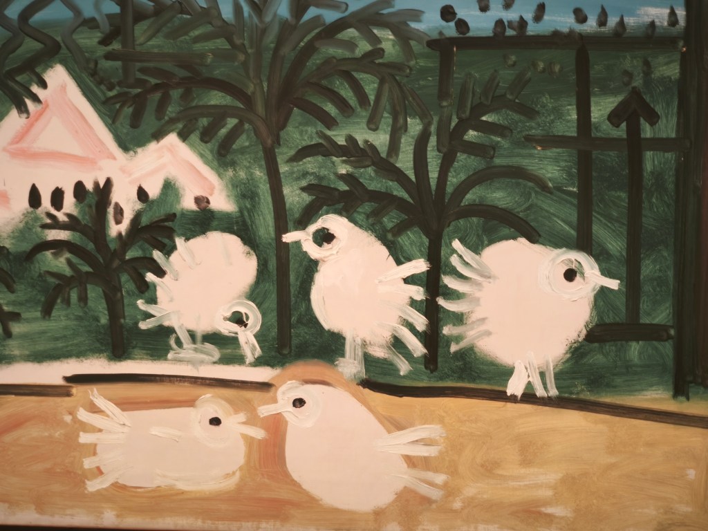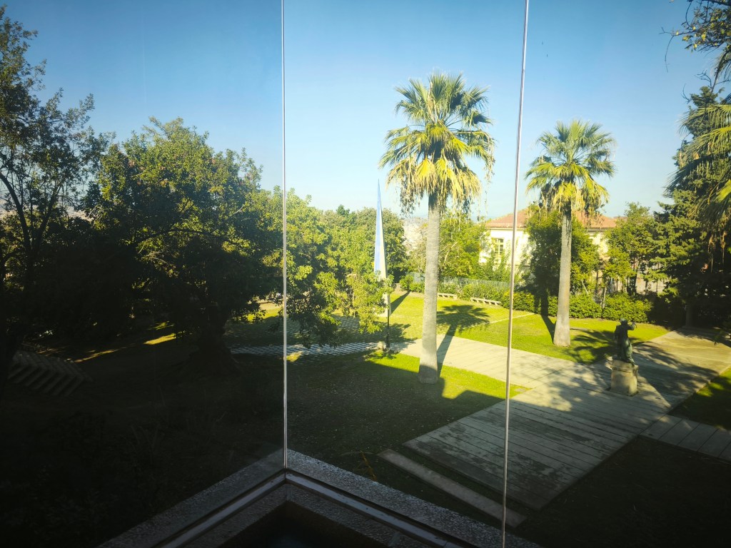 и все пак, след една дълга закуска с местни сладкиши и много кафе в двор, потънал в зеленина и гугутки, краткият дъжд затанцува по прозорците наоколо доколкото да ни напомни, че е време за нова изложба.