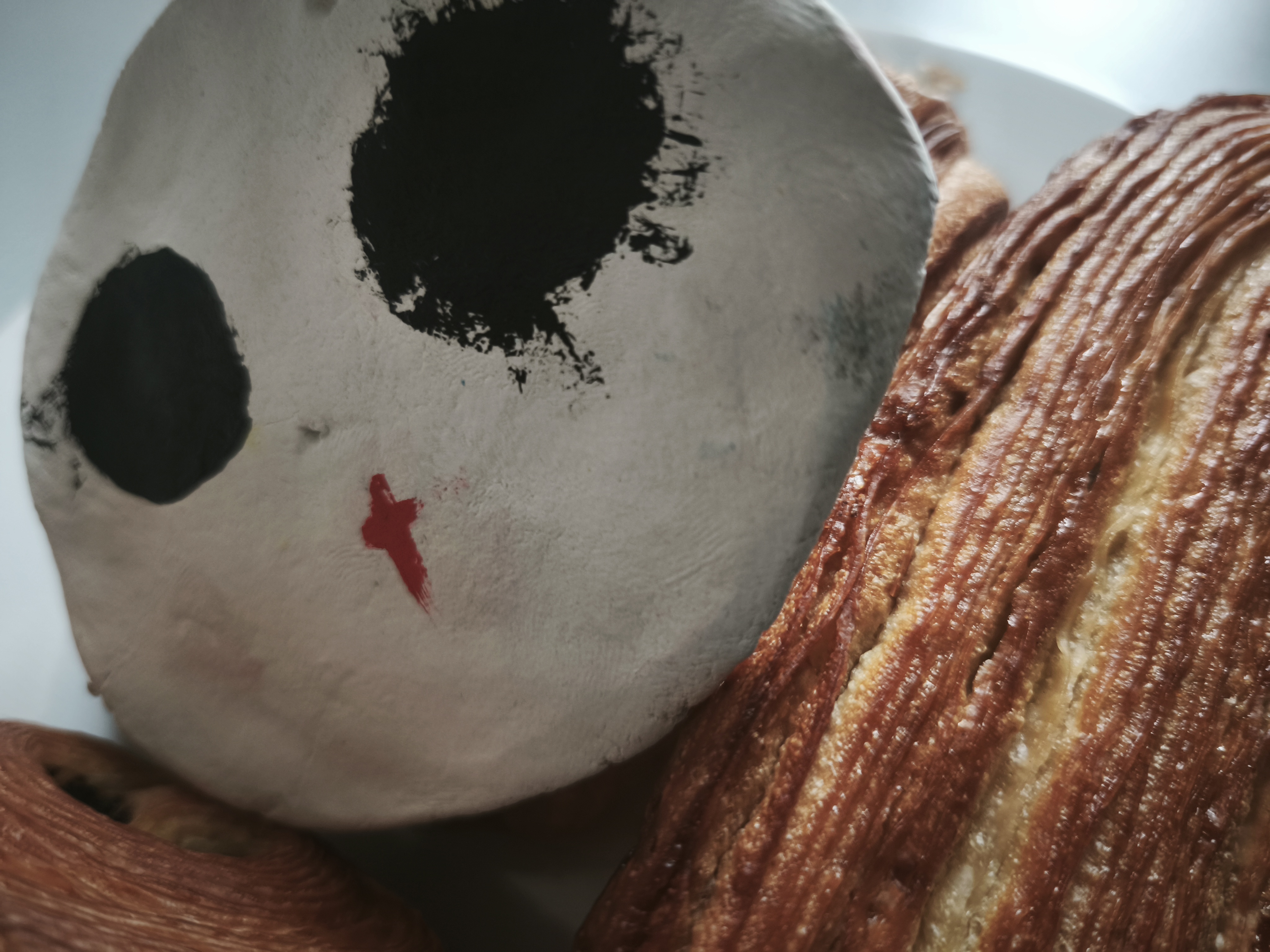 боя, грим, бинт, пелерини и високи токчета, тикви, разрязани в двулицеви усмивки, Жокер и принцеса, момче с грахово зелена коса, дълги ботуши на бързаща гейша с дълго до земята палто вместо кимоно_напълно съм съгласна_ефектът на идеята е в преобличането, тайно си мисля за Сизиф и неговия камък, изкачването и спускането като пораждане на живота извън наказанието на боговете, преодоляването е силата, равна на маскирането и трансформирането_