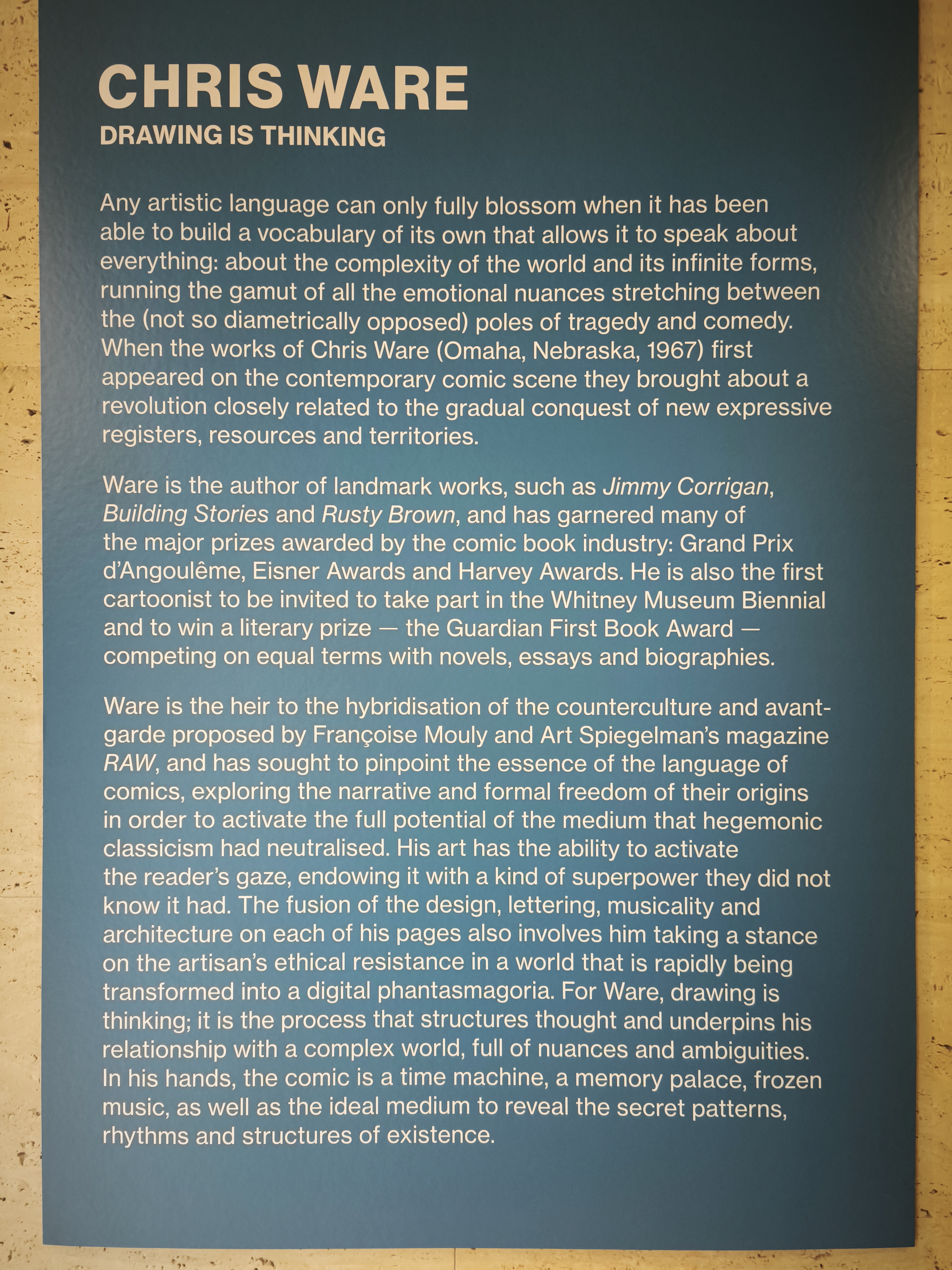 Chris Ware разказва въпросително съвременността ни през платформите си, базирани върху динамични дискурси, визуална архитектура, плътни персонажи.