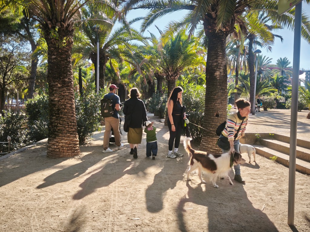 отново в парка ‘ Хуан Миро ‘, там сме си ‘ вкъщи ‘_ зелено утро с пъстри папагали, безброй разхождащи се кучета, смелостта на Леон да се заиграва с пясъчните им стъпки
