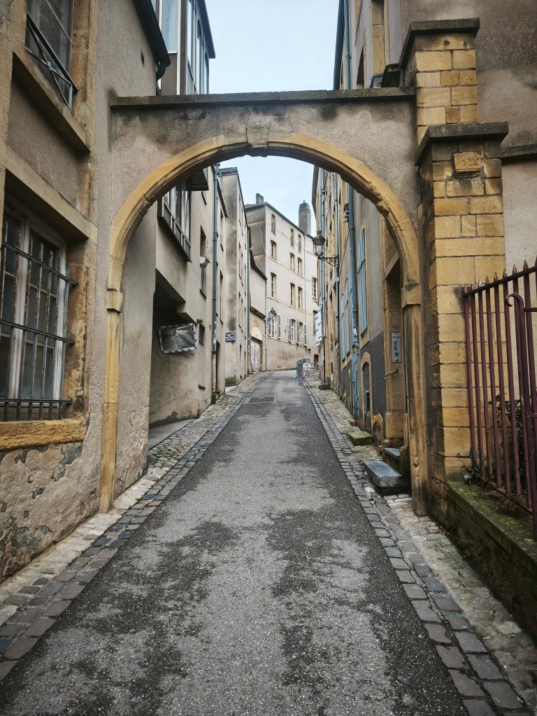 утрото и пътят до Помпиду_Мец предложиха почти филмово изживяване, в което улици и дворове изненадващо ни срещат с терапевтичните си неделни тайни_