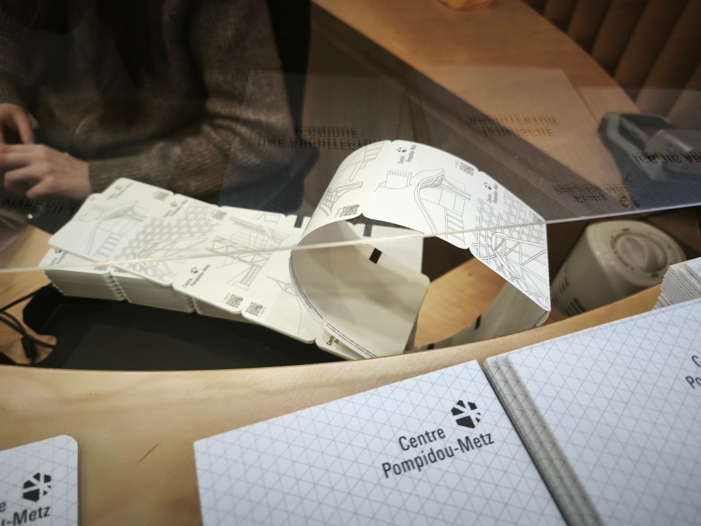 билетен център, Помпиду_Мец тези стилизирани архитектурни картончета с графичността на линиите от мястото, в което сме са отпечатани върху бяло_като изпитни талони по мислене или възможността за нашето тълкуване_