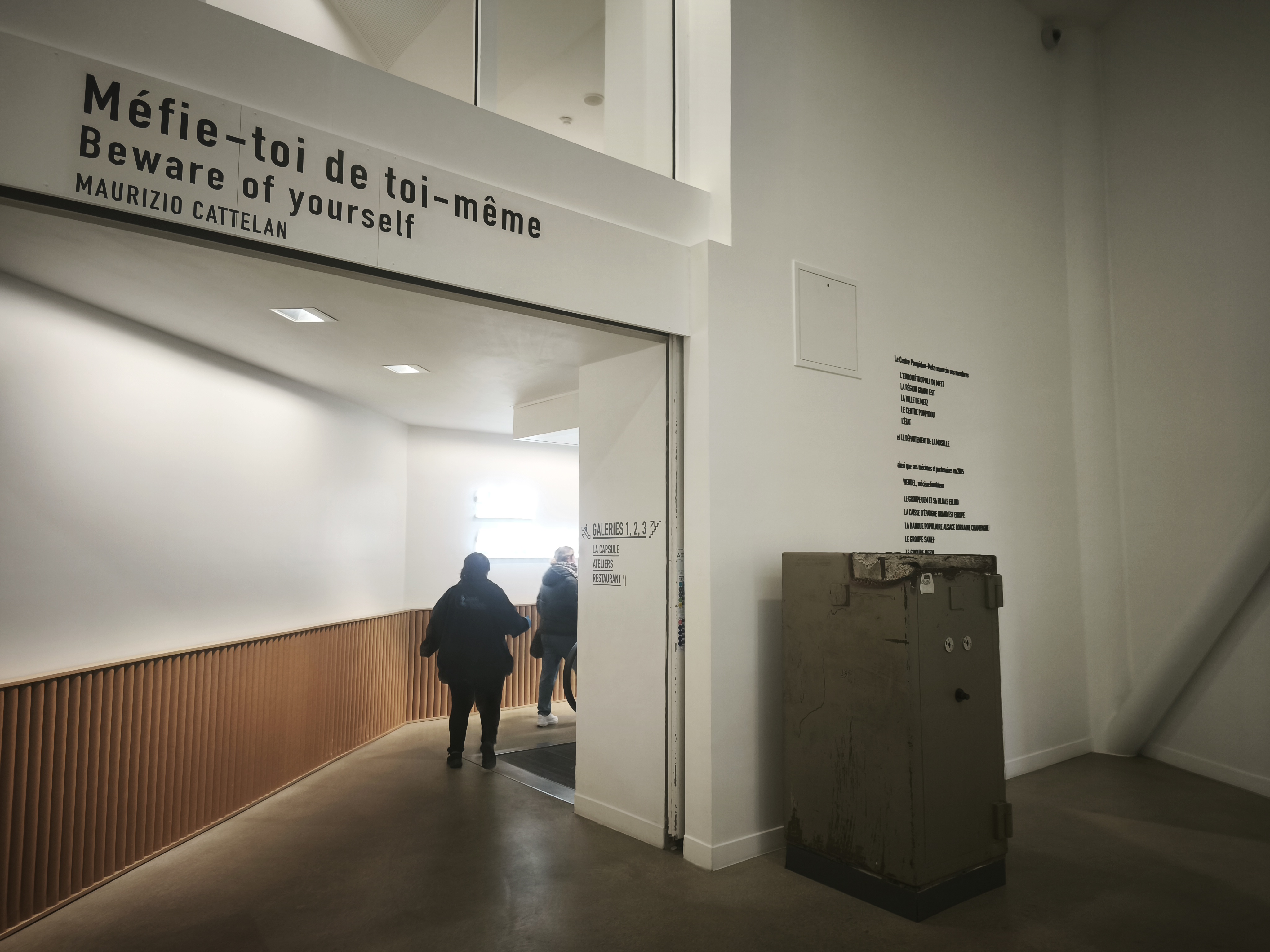 през 2025 година, за 15 годишнината от своето създаване / 12 май 2010 г. / център Помпиду_Мец кани италианския визуален артист Маурицио Кателан да курира изложба, която ще изпълни обемите на пространството_