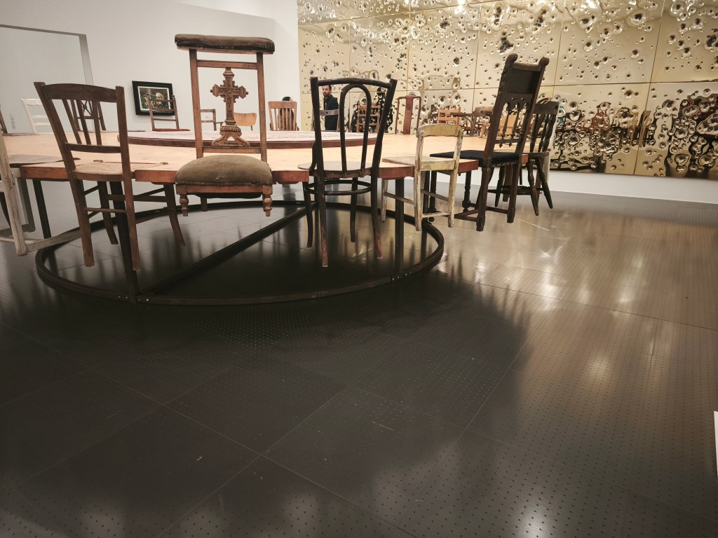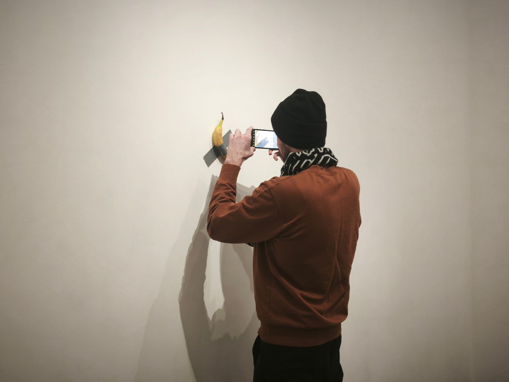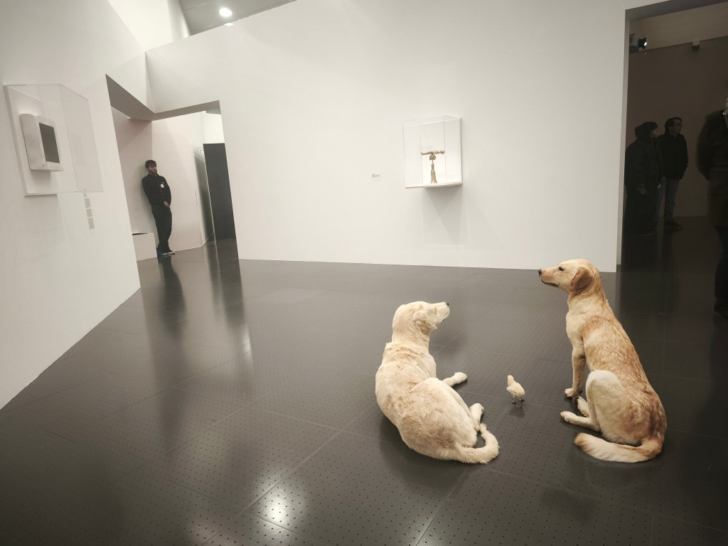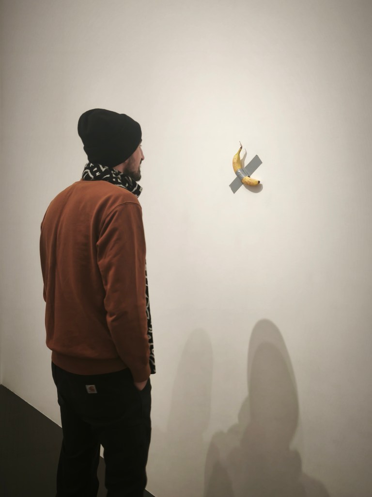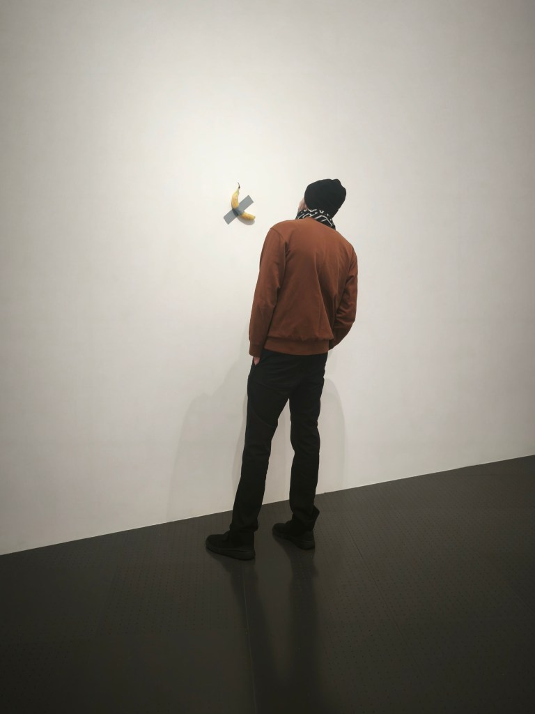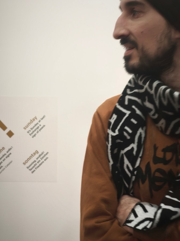 как през времето всяка творба търси новото си домисляне_ куратор на изложбата в Мец_Помпиду е Маурицио Кателан_ с Антонио и Петър, януари 2026
