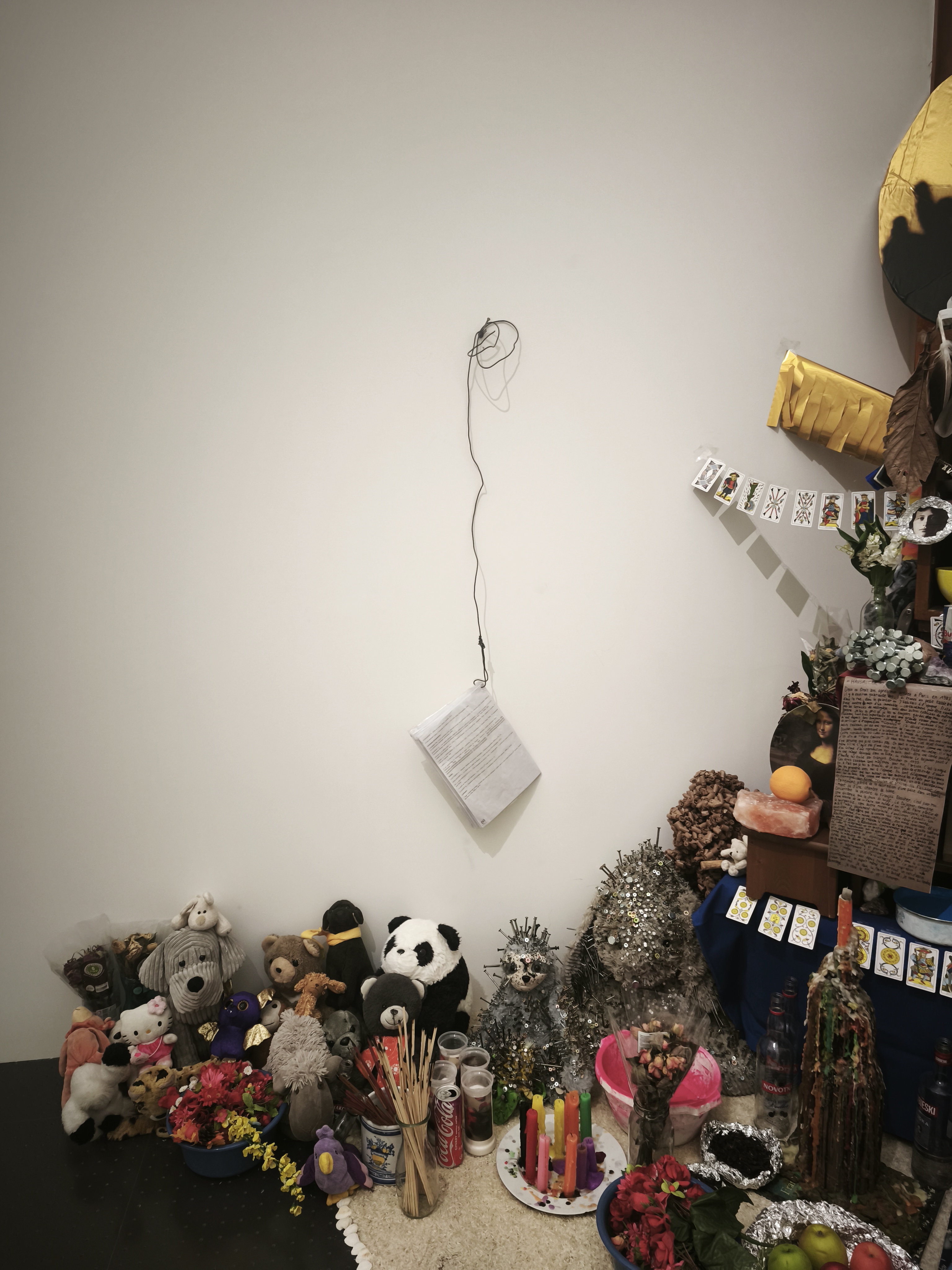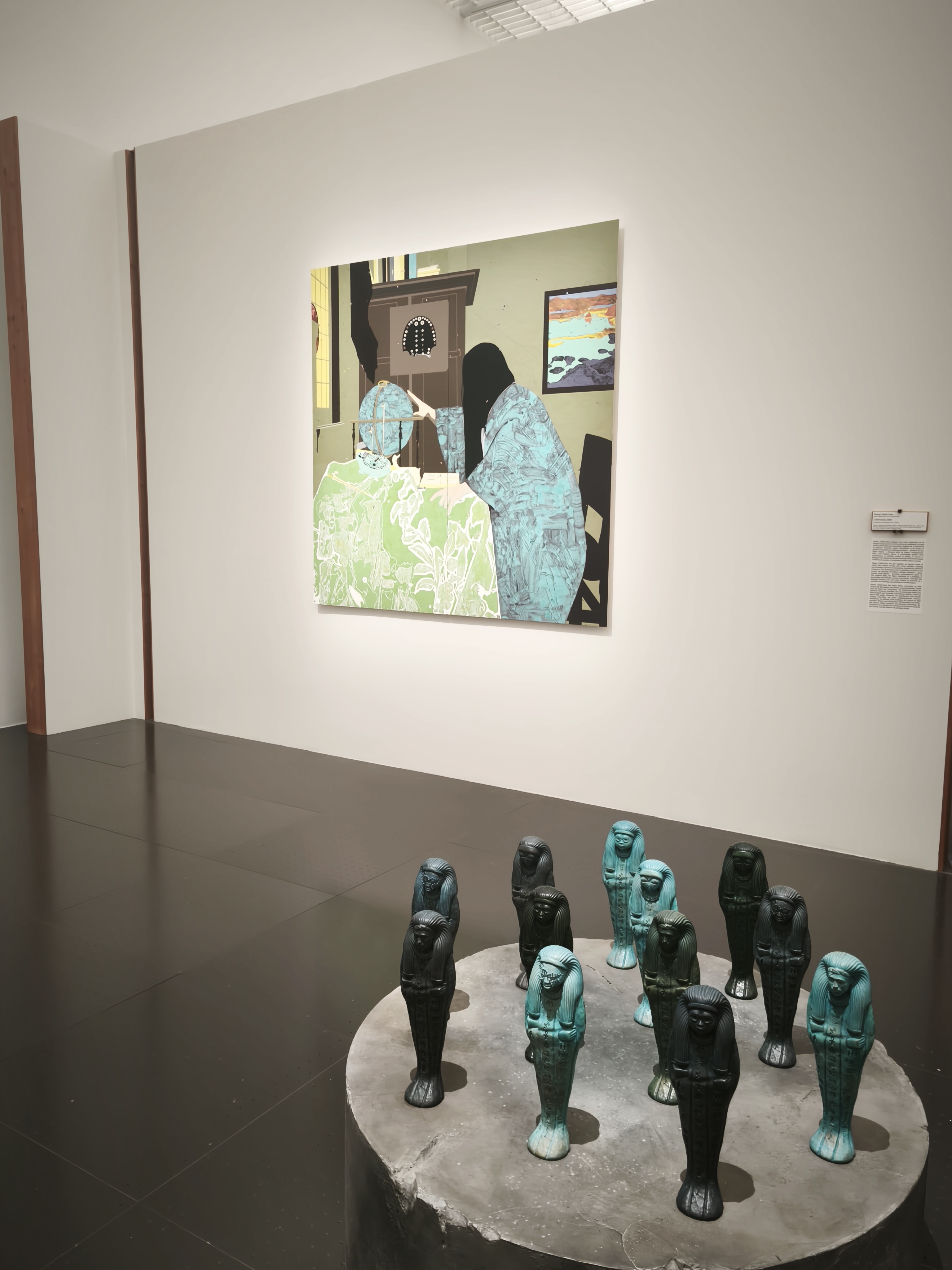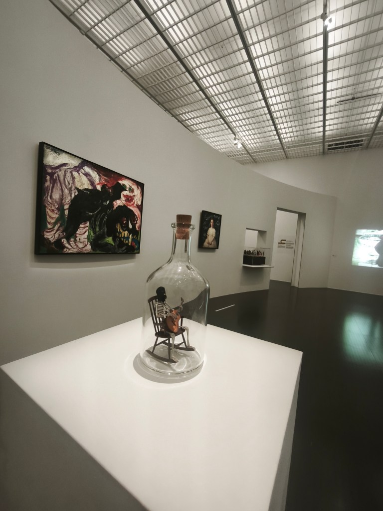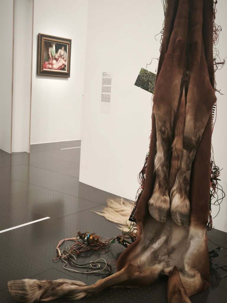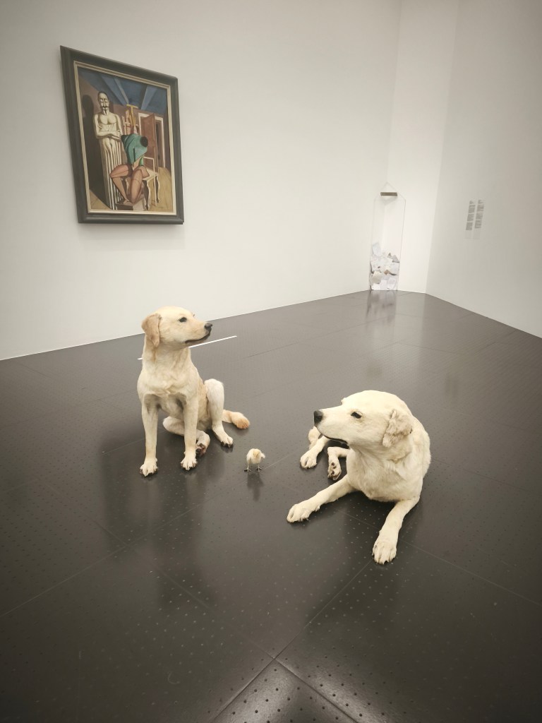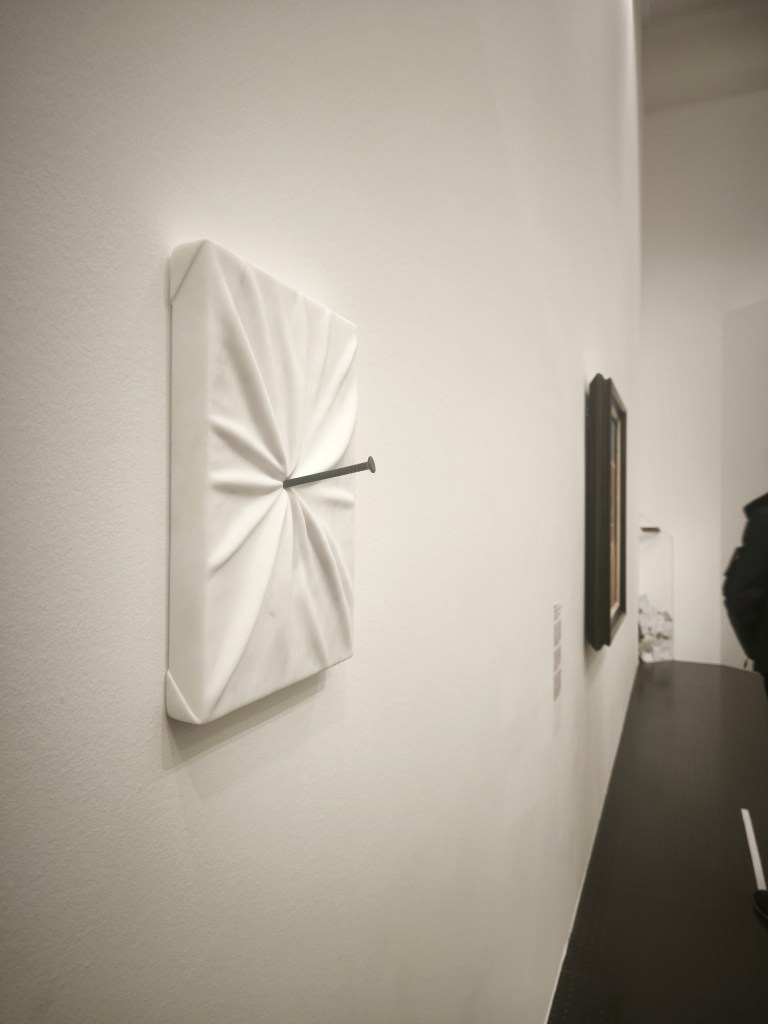 изложбата създава чувството за търсене на смисъла през времето_ в търсене на обяснения за този странен свят, Маурицио подава интересен инструмент на смесване_създава множество вмъквания и отклонения като представя произведения от други векове / освен 20-ти и 21-ви / , като ‘ Градива ‘ или редки ръкописи и книги от Ватиканските музеи, като по този начин разкрива източниците на вдъхновение за модерното и съвременно изкуство.