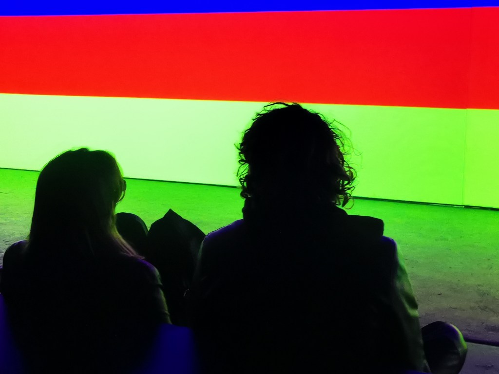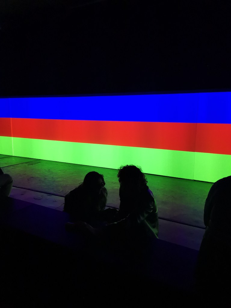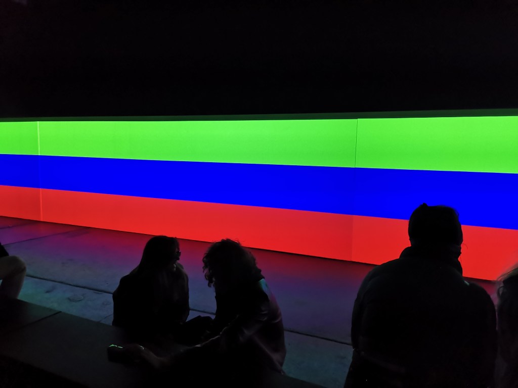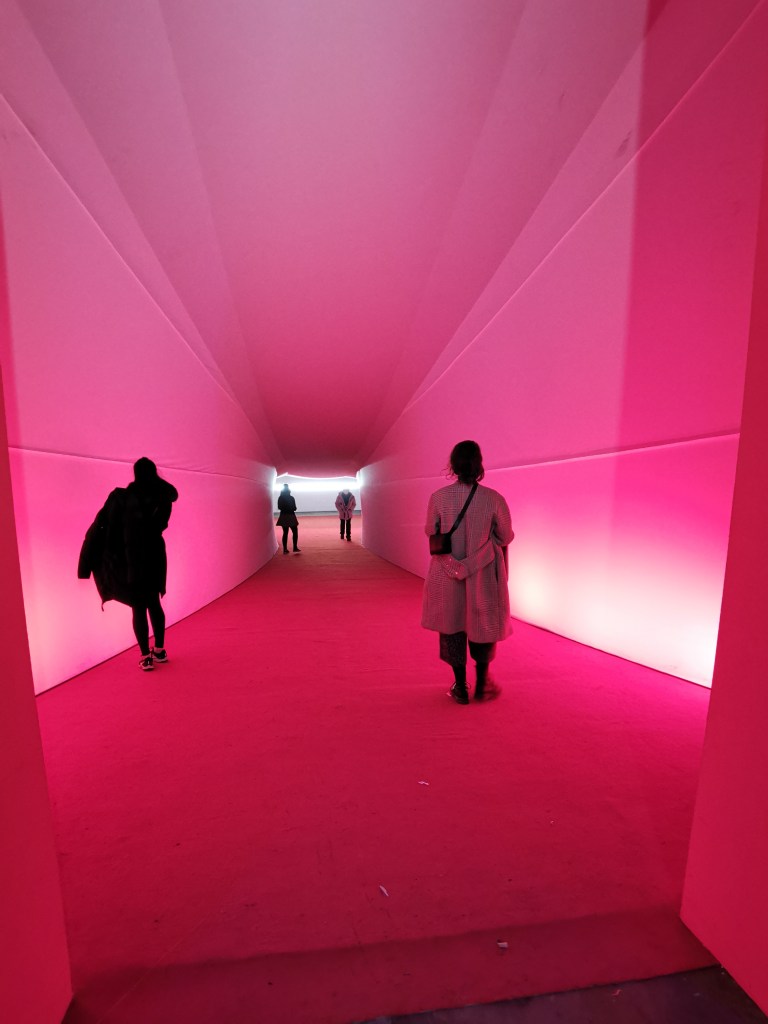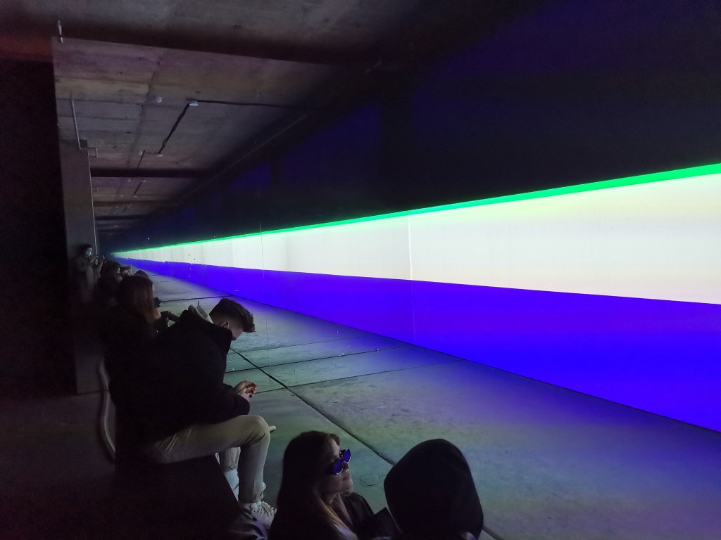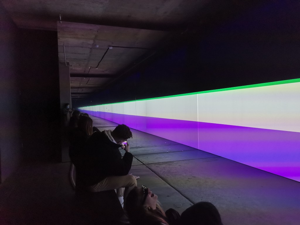 1_стих на Байрон от 1816г ‘ Тъмнина ‘, която отправя зрителя в светлинен тунел с дължина 24 м. стихотворението е писано по време на газовото изригване на връх Тамбора, последвано от затъмняване на слънцето и температура около 3 градуса ‘ годината без лято ‘ / необикновените червени залези от това време са документирани в творбите на Джоузеф Търнър, известен като художник на светлината /.