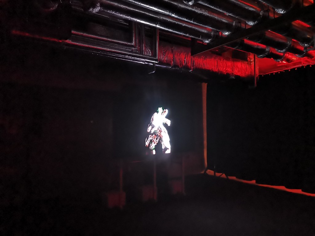 техно аудио внушения, присъщи на въображаеми планетарни емисии / визуални кодове, оптично уголемени и плуващи в танца на вълната анимирани скулптури / микс от образи, цвят в интензитет, хора и екрани, коридори с упътващи знаци, въздухоотводни тръби, осветени завеси, думи и текстове, изграждащи диалог между публика и артисти_електронен пулс / динамика в оборот_