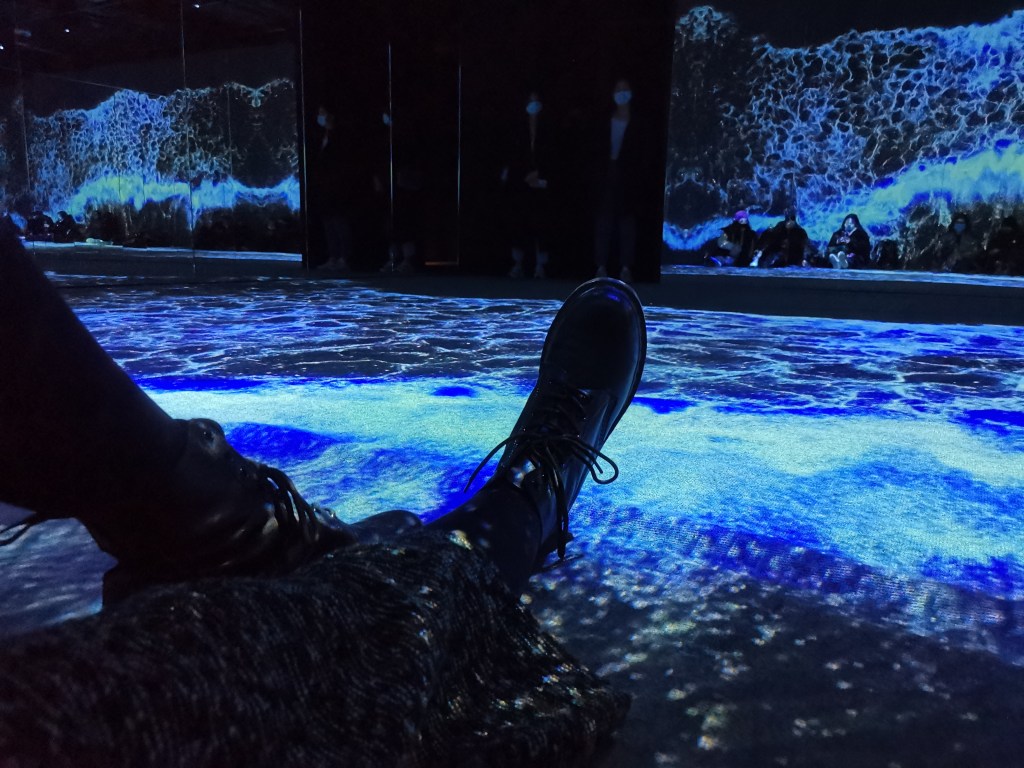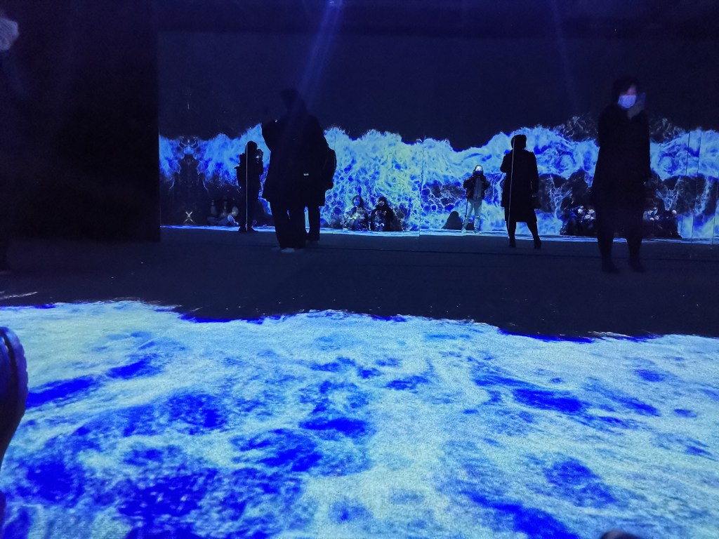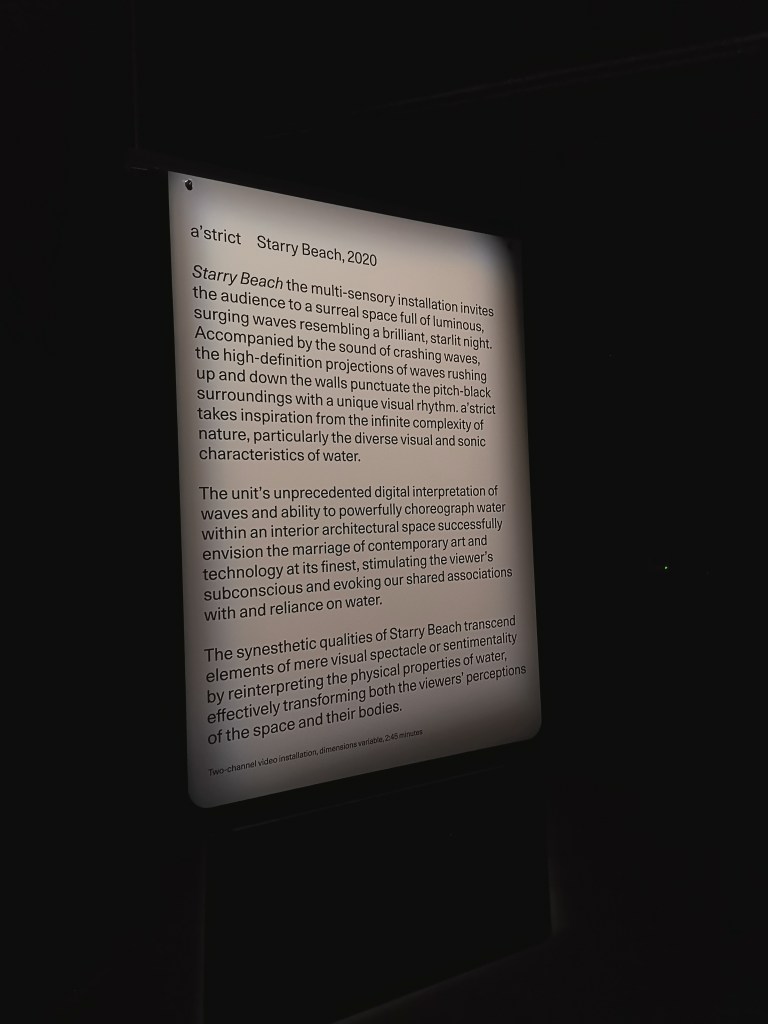 сюрреалистична среда_ мулти – сензорната видео инсталация Starry Beach на южнокорейския арт колектив a’strict, чиято премиера е била още през май 2020, по време на пандемията.